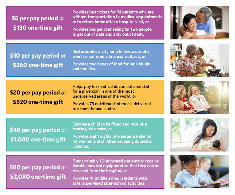 - Associate Assistance Fund: Financial challenges can happen to anyone. By contributing here, you’re helping colleagues in need, providing support when they need it most.